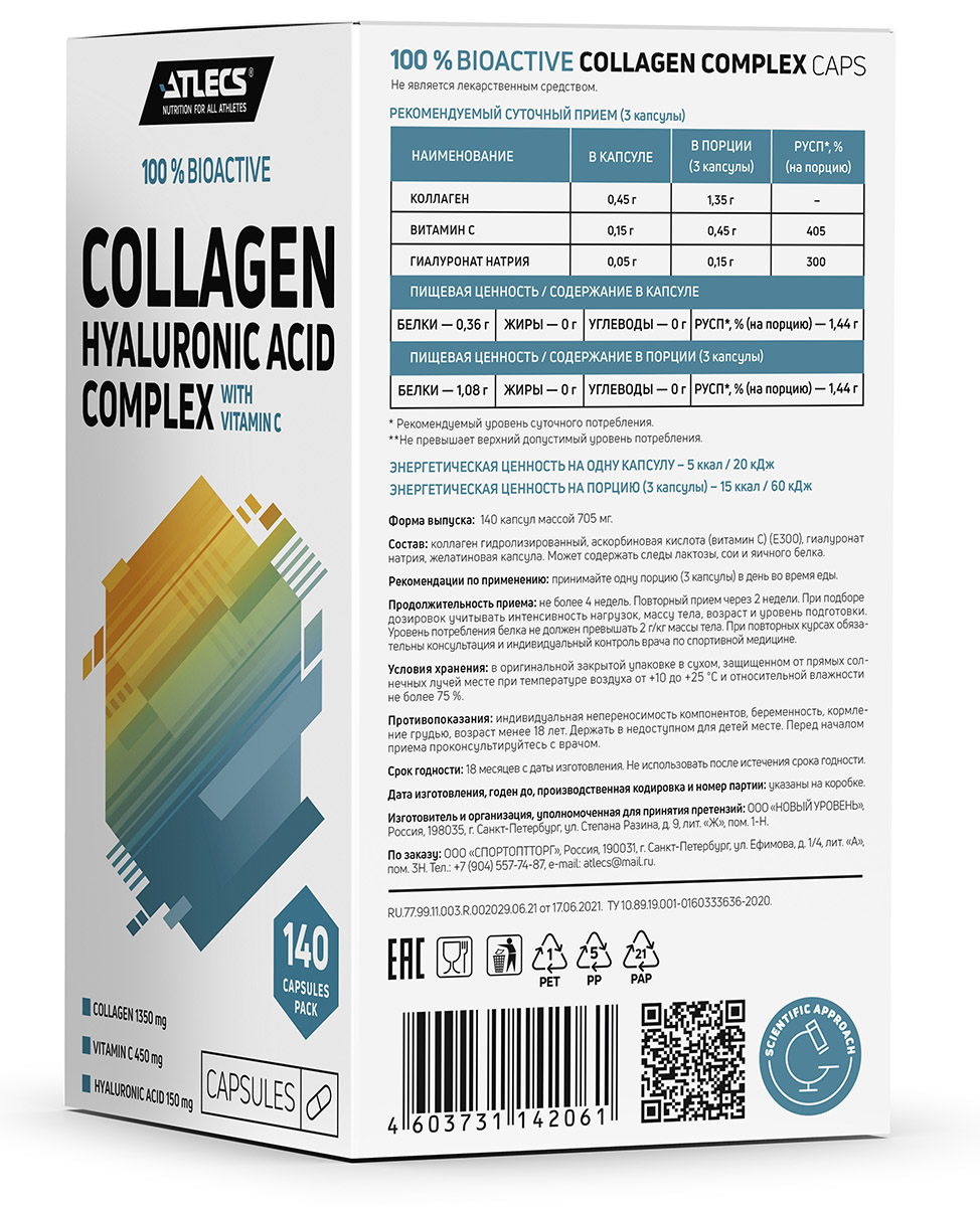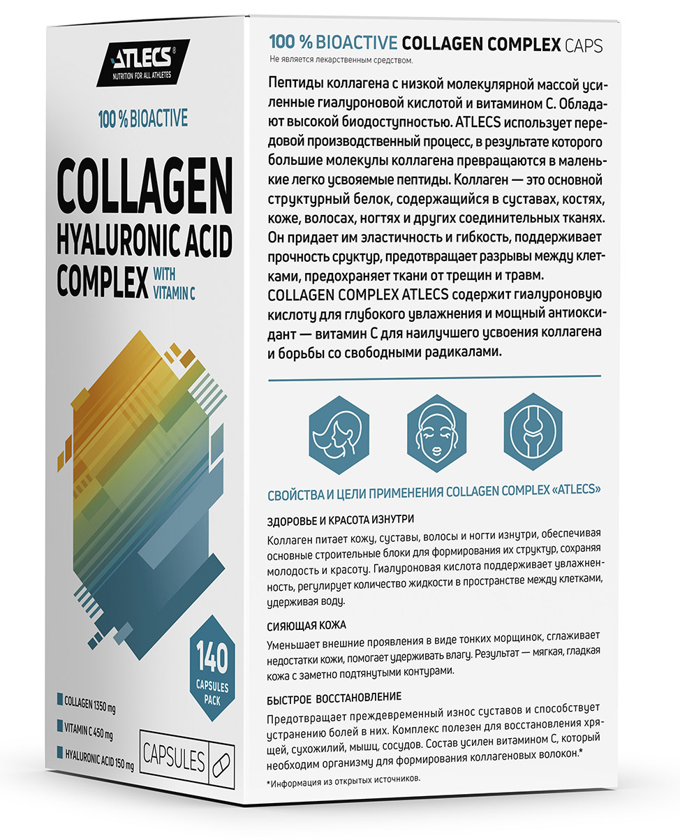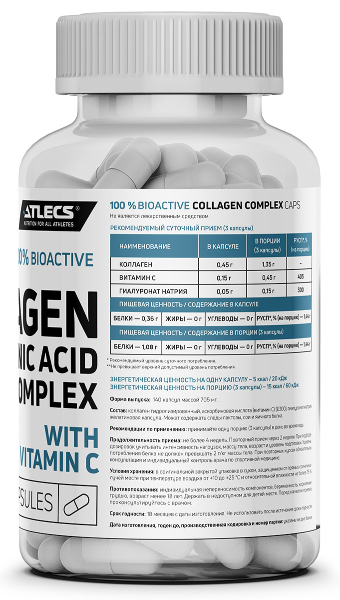 Элемент каталога Atlecs Collagen+Vit C+HA, 140 caps [411461]