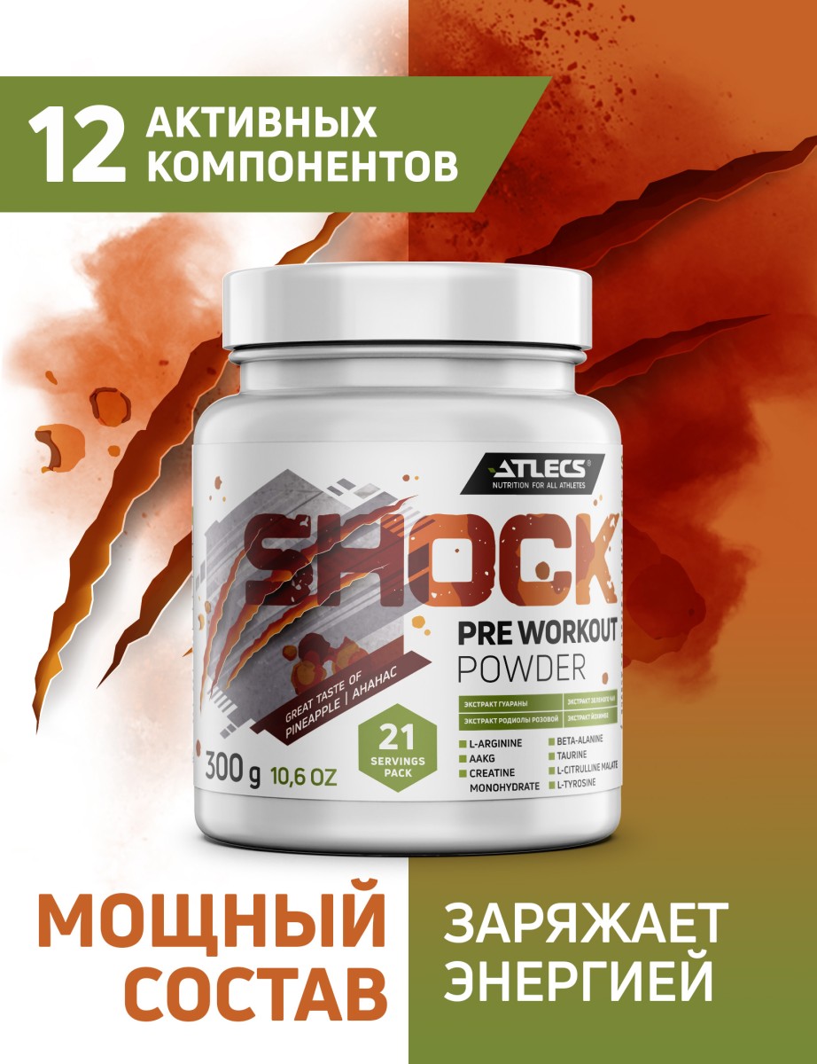 | Элемент каталога | Atlecs Shock Pre Workout 300 гр [410065] | |