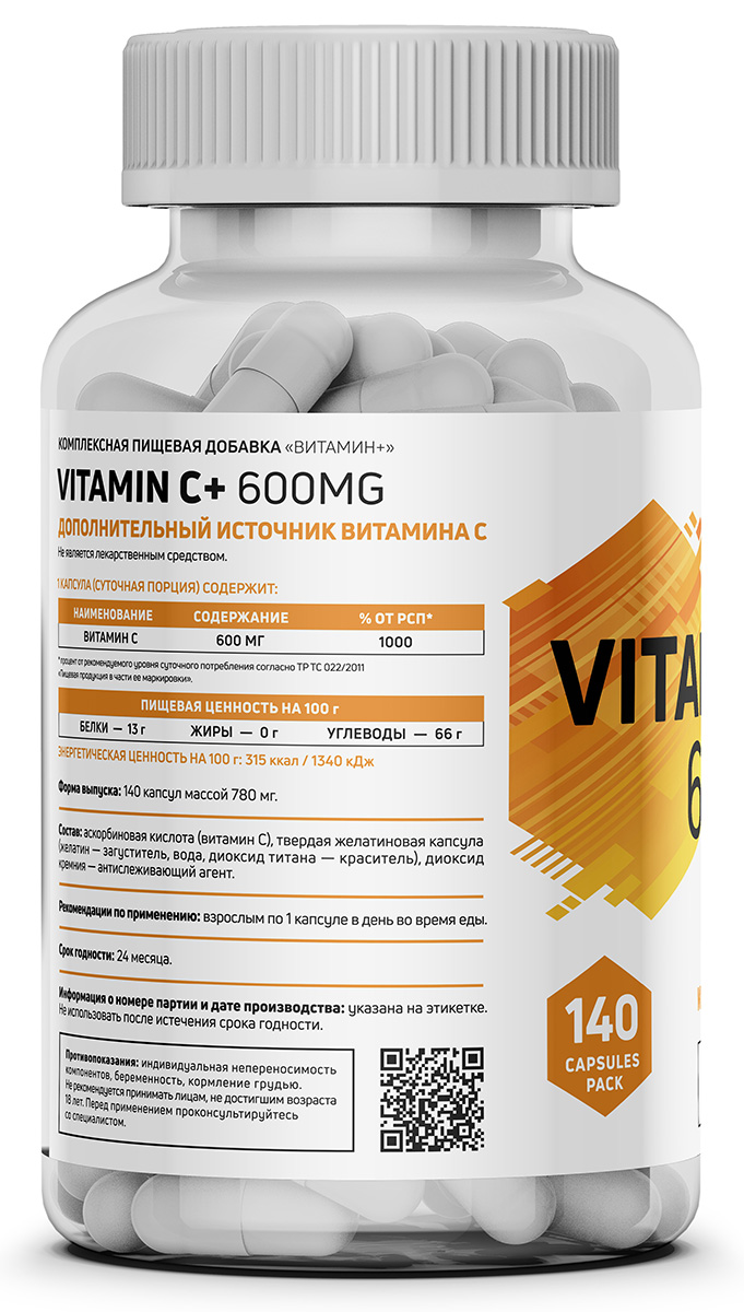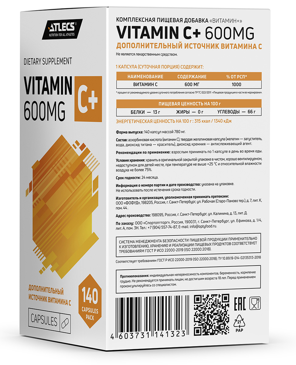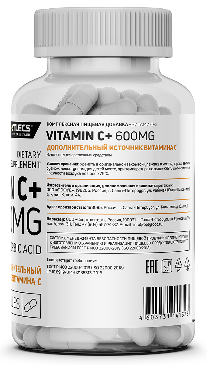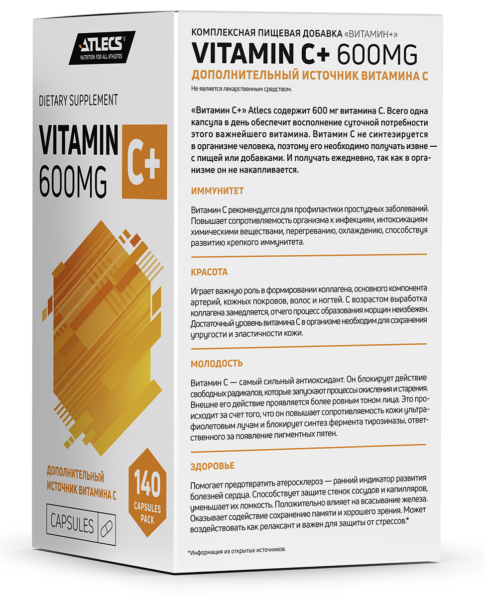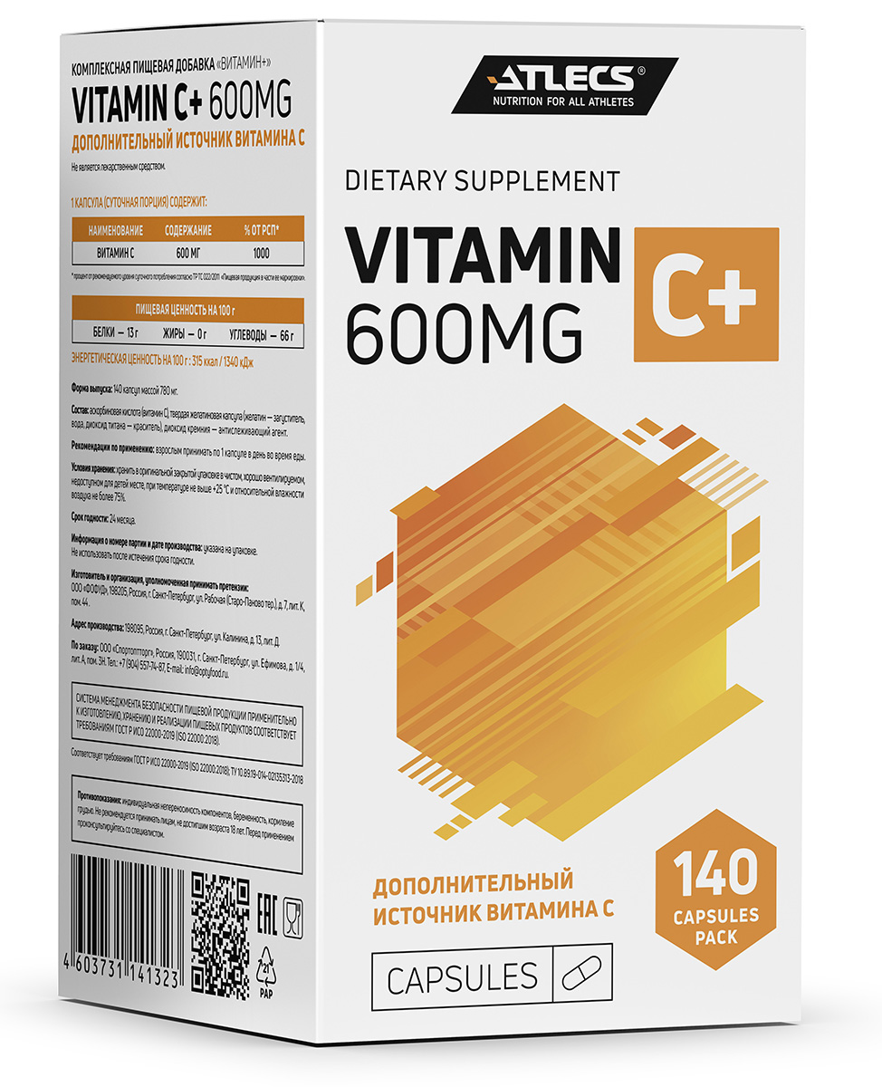 Элемент каталога Atlecs Vitamin C 600 mg, 140 caps [410161]