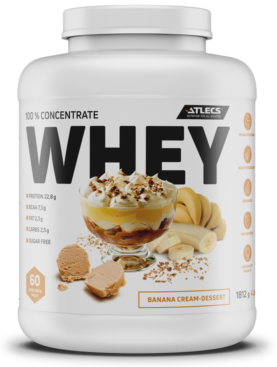 Atlecs 100% Concentrate Whey Protein — универсальный источник легкоусвояемого белка — концентрата молочной сыворотки. Он обладает полным набором аминокислот, содержит малое количество жиров и углеводов.