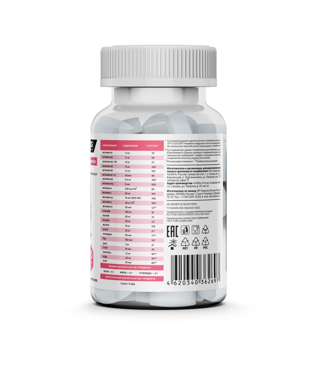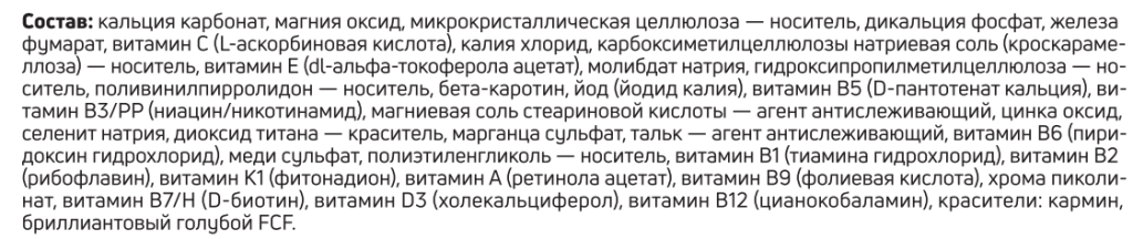 - Сбалансированная формула из 13 витаминов и 12 минералов