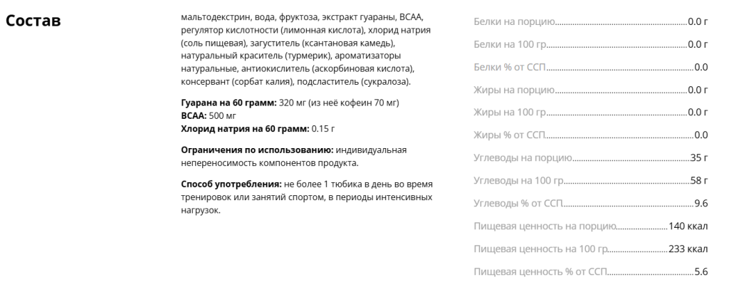 | Характеристики | Апельсин / BombBar ENERGEL 60 g, orange | |
