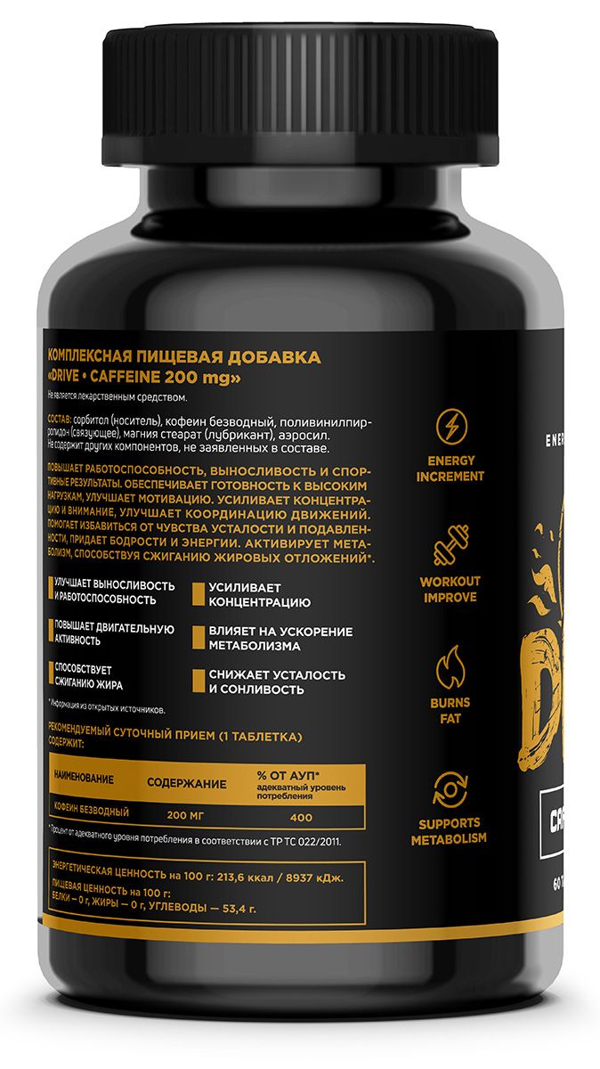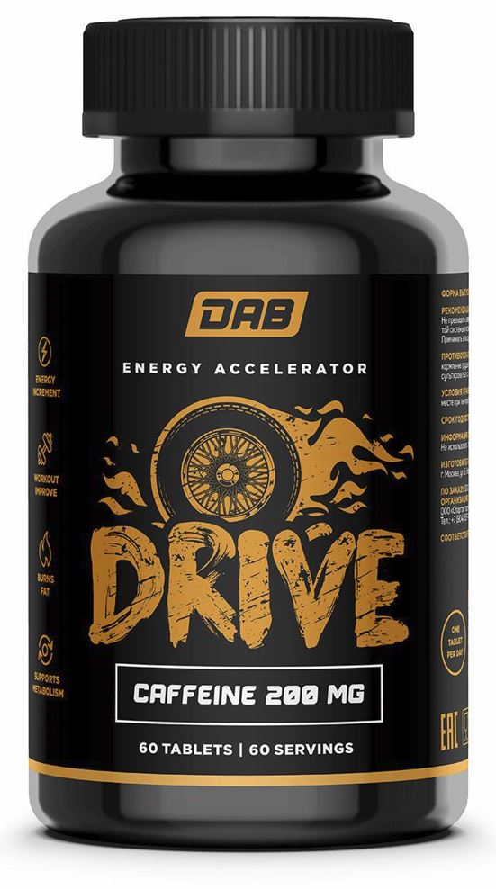 DAB Drive Caffeine 200 mg, кофеин, кофеин 200 мг в таблетках, caffeine 200, энергетическая