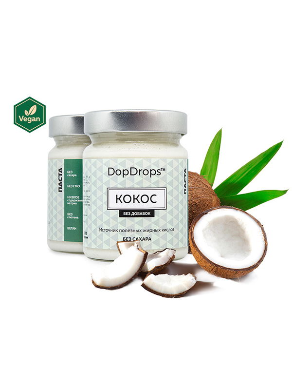 100% мякоть кокоса, смолотая до принятой консистенции послужит прекрасным дополнением к рациону правильного и функционального питания. Кокосовая Паста DopDrops вкусна как с творогом и ягодами, хлебцами, кашами и коктелями, так и просто ложкой из Банки!