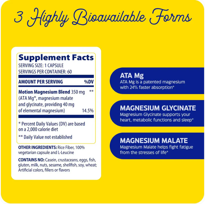 Основной компонент: Смесь магния Motion (350 мг) — включает: