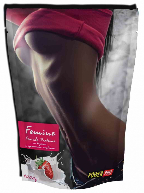 Femine Protein – женский сывороточный протеин, производимый российским брендом Power Pro. Помогает быстрее восстанавливаться и ускорить набор мышечной массы. В состав включены компоненты, благоприятно влияющие на здоровье и сохранение красоты женщин: витамины и минерала, L-карнитин, коэнзим, гиалуроновая кислота, гуарана и многие другие.