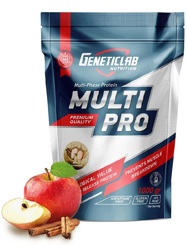 Мультикомпонентный протеин Multi Pro от Geneticlab Nutrition имеет уникальный аминокислотны состав благодаря комплексу из яичного альбумина, мицеллярного казеина и сывороточного протеина, в соотношении, оптимальном для усвоения организмом. Multi Pro благодаря усваивается постепенно, аминокислоты поступают в плазму крови поэтапно и дают постоянную подпитку организму на протяжении нескольких часов, защищая организм от катаболизма, дает чувство насыщения, улучшает восстановление, обмен веществ и положительно сказывается на всех системах организма.