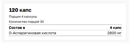 · Высокая концентрация: Каждая порция содержит 2800 мг чистой D-аспарагиновой кислоты, что обеспечивает выраженный эффект.