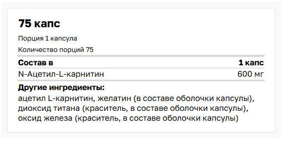 | Элемент каталога | GEON N-Acetyl L-Carnitine 75 капсул [456255] | |