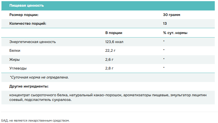 — Высокое содержание белка (22,2 г на порцию);