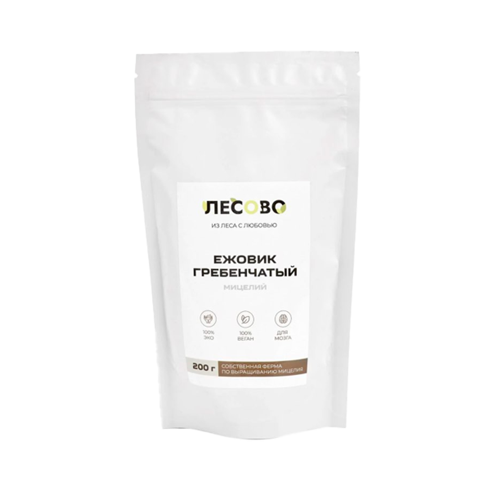 ЛЕСОВО Ежовик Гребенчатый Мицелий — это 100% натуральная биологически активная добавка, созданная для поддержки вашего здоровья на клеточном уровне. Ежовик гребенчатый, известный также как «Львиная грива» — уникальный гриб, который высоко ценится в восточной медицине своими ноотропными и нейропротекторными свойствами. Его мицелий (вегетативное тело гриба) является мощным источником биологически активных веществ. Регулярный прием способствует улучшению когнитивных функций: памяти, концентрации внимания и ясности ума. Кроме того, ежовик благотворно влияет на нервную систему, помогая снизить воздействие стресса и поддержать эмоциональное равновесие. Это ваш природный помощник для сохранения ясности мышления и спокойствия в условиях современной жизни.
