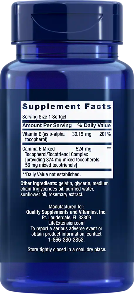 - Комплекс смешанных токоферолов и токотриенолов (Gamma E Mixed Tocopherol/Tocotrienol Complex) — 524 мг