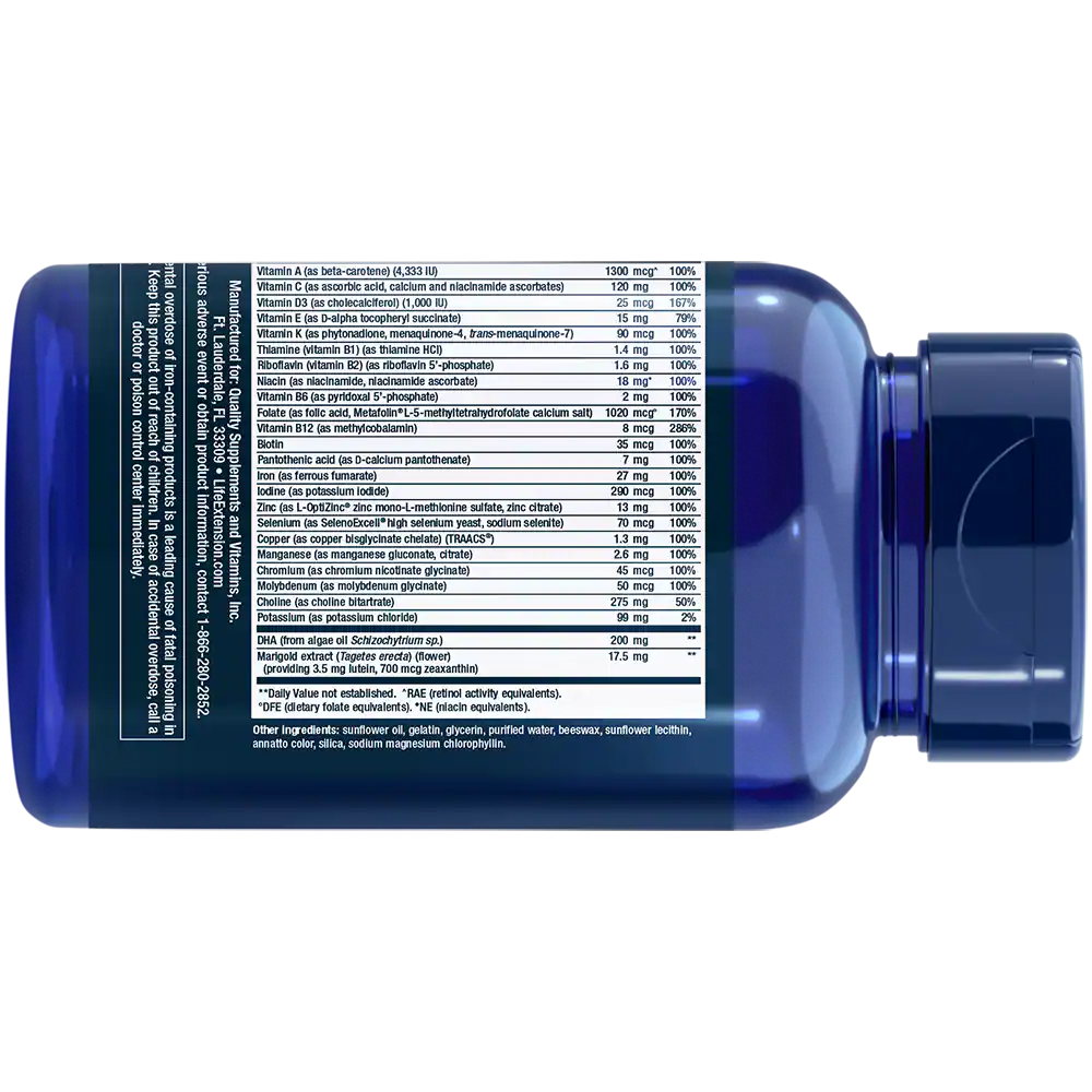 Особое внимание уделяется высокой дозе фолиевой кислоты (1020 мкг), представленной в усвояемой форме Metafolin® L-5-MTHF, что особенно важно на ранних сроках беременности для предотвращения дефектов нервной трубки. В состав также входит 200 мг DHA из водорослевого масла Schizochytrium sp., критически важного для формирования мозга и зрения ребенка. Добавка обогащена железом (27 мг), йодом (290 мкг), витамином B12 (8 мкг) и биотином (35 мкг), а также содержит экстракт бархатцев (маригольда) с лютеином и зеаксантином для поддержки зрительной функции. Все компоненты тщательно подобраны с учетом повышенных потребностей организма в этот ответственный период и представлены в легкоусвояемых формах.