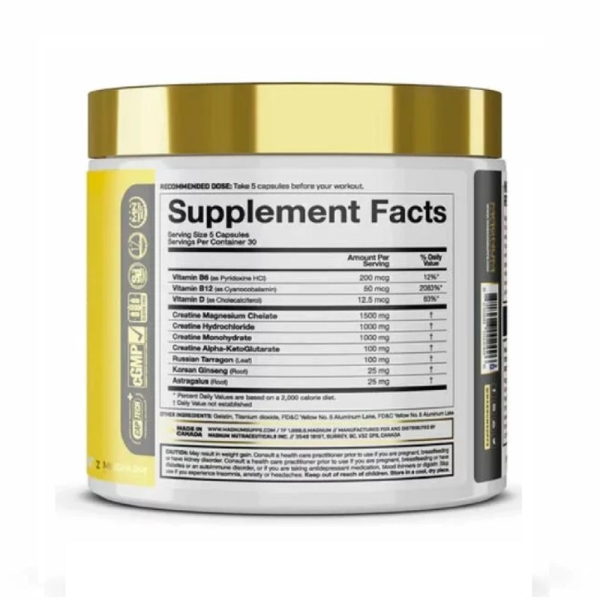 КРЕАТИН МАГНУМ увеличивает силовые показатели. Высвобождает максимум энергии за короткий промежуток времени. Добавка поможет поднять больший вес на снаряде или пробежать спринтерскую дистанцию быстрее. Препарат быстро восполнит энергию для работы мышц.