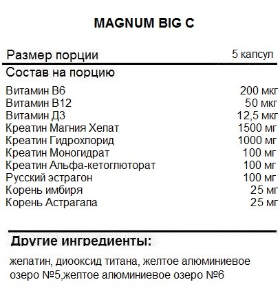 MAGNUM BIG C (МАГНУМ БИГ СИ) поможет увеличить силовые показатели, мышцы и скорость восстановления.