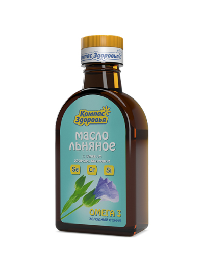 Масло льняное с селеном, хромом и кремнием Компас здоровья, 200 мл