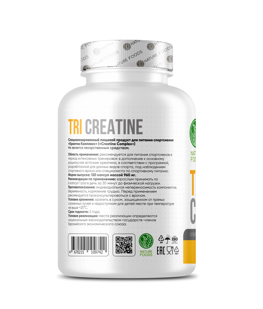 Nature Foods TRI-CREATINE — это мощная и инновационная формула креатина в удобной капсулированной форме,которая объединяет три наиболее эффективные формы этого вещества. Это тщательно сбалансированная матрица, разработанная для максимального усвоения, мощного всплеска энергии и стабильного результата. Теперь все преимущества тройного креатина — без необходимости смешивать порошок, в самой удобной для приема форме.