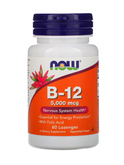 Элемент каталога NOW B-12 5000 mcg + FOLIC, 60 tabs [400162]
