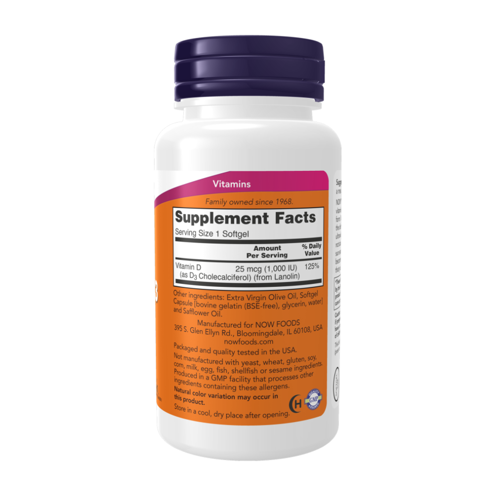 Поддерживайте здоровье своего организма на высоком уровне с биологически активной добавкой NOW VIT D-3 1000 IU — ваш надежный источник витамина D3, необходимого для крепких костей, сильного иммунитета и общего благополучия. Каждая софтгель содержит 1000 МЕ (25 мкг) чистого витамина D3 в форме холекальциферола, полученного из ланолина, что обеспечивает отличную усвояемость и эффективность. Витамин D3 играет ключевую роль в усвоении кальция и фосфора, способствуя поддержанию прочности костей и зубов, а также помогает нормализовать работу иммунной системы, особенно в холодное время года. Исследования показывают, что достаточный уровень витамина D связан с улучшением настроения, поддержанием мышечной силы и даже снижением риска хронических заболеваний.