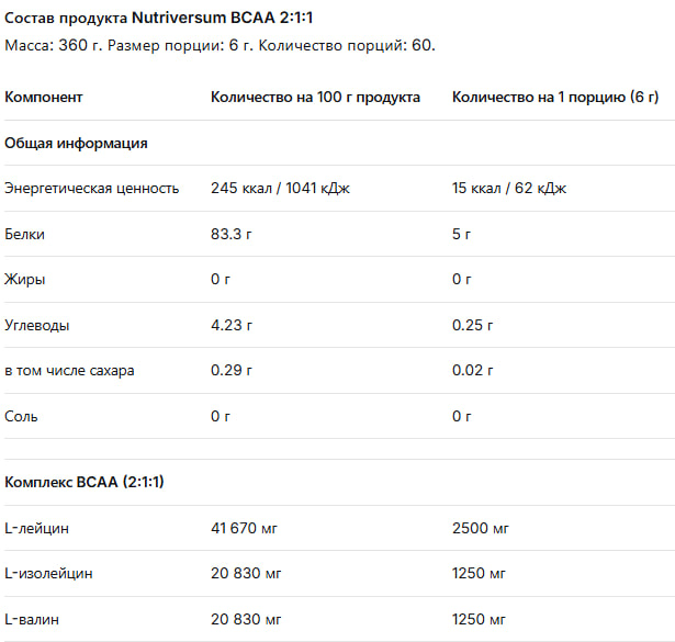 | Элемент каталога | Nutriversum BCAA 2:1:1 360 гр [456633] | |