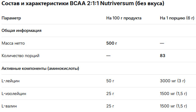 | Элемент каталога | Nutriversum BCAA 2:1:1 500 гр [456634] | |
