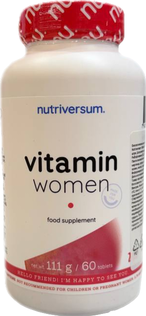 Nutriversum VITAMIN WOMEN — это комплексная биологически активная добавка, разработанная специально для поддержания здоровья, энергии и красоты женщин. Формула объединяет важнейшие витамины группы B, антиоксиданты (витамины C, E, A, селен, цинк), а также уникальные растительные экстракты и минералы, работающие в синергии. Витамин D3 и кальций способствуют укреплению костной ткани, железо и фолиевая кислота поддерживают нормальное кроветворение и энергетический обмен. Экстракт зелёного чая, богатый полифенолами и EGCG, вместе с альфа-липоевой кислотой и экстрактом клюквы обеспечивают мощную антиоксидантную защиту, способствуя детоксикации и поддержанию клеточного здоровья. Хром и инозитол помогают регулировать метаболизм углеводов и жиров, а комплекс с холином и биотином благоприятно влияет на состояние кожи, волос и ногтей. Спирулина и ликопин дополнительно обогащают формулу ценными фитонутриентами. Регулярный приём добавки помогает снизить усталость, повысить жизненный тонус, поддержать иммунитет и гормональный баланс в условиях современных нагрузок. Продукт создан с учётом специфических потребностей женского организма, обеспечивая сбалансированное поступление нутриентов в легкоусвояемой форме. Разработанный с учётом современных ритмов жизни, комплекс помогает сохранять бодрость, ясность ума и внутреннюю гармонию. Сбалансированный подбор нутриентов направлен на комплексную поддержку женского здоровья на клеточном уровне, что делает добавку надёжным ежедневным спутником для тех, кто стремится к активному долголетию и сохранению естественной красоты.