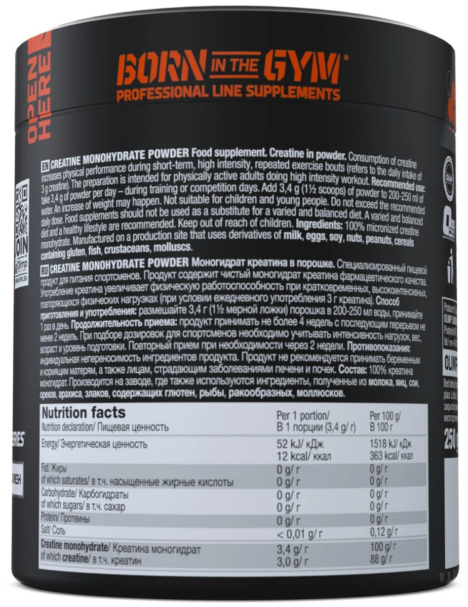Каждая порция (3,4 г) содержит 3 г чистого креатина