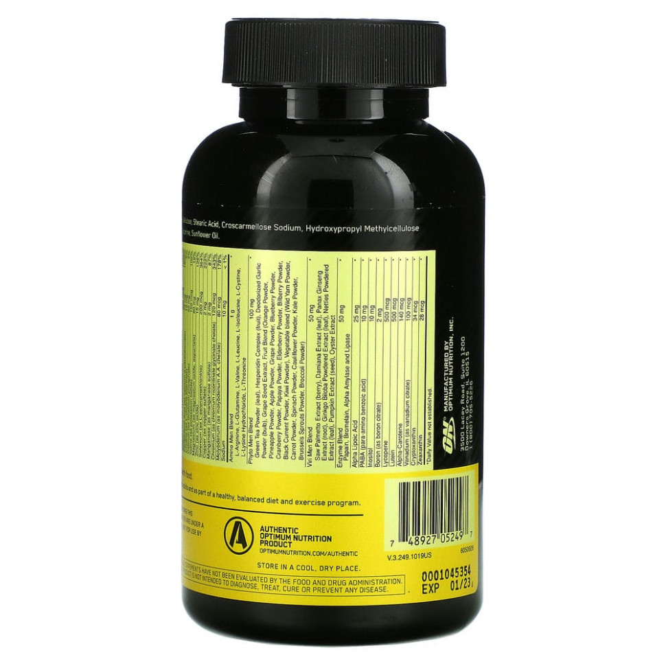 Формула, разработанная всемирно известным брендом спортивного питания Optimum Nutrition (ON), заключает в себе полезные свойства более 75 активных ингредиентов. Состав Opti-Men можно разделить на 4 группы: