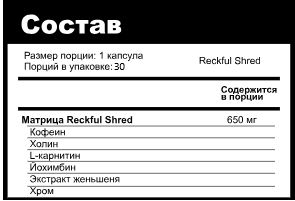 Жиросжигатель Reckful Shred для женщин и мужчин. fat burner, спортивное питание для сушки и контроля веса.