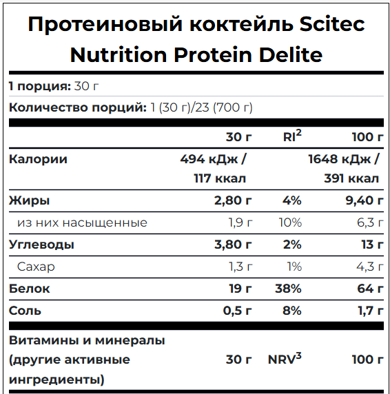 | Элемент каталога | Scitec Protein Delite Shake 700 гр [413587] | |