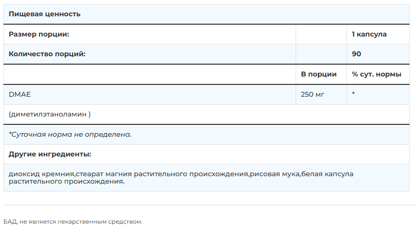| Элемент каталога | SNT DMAE 250 мг 90 капсул [456915] | |