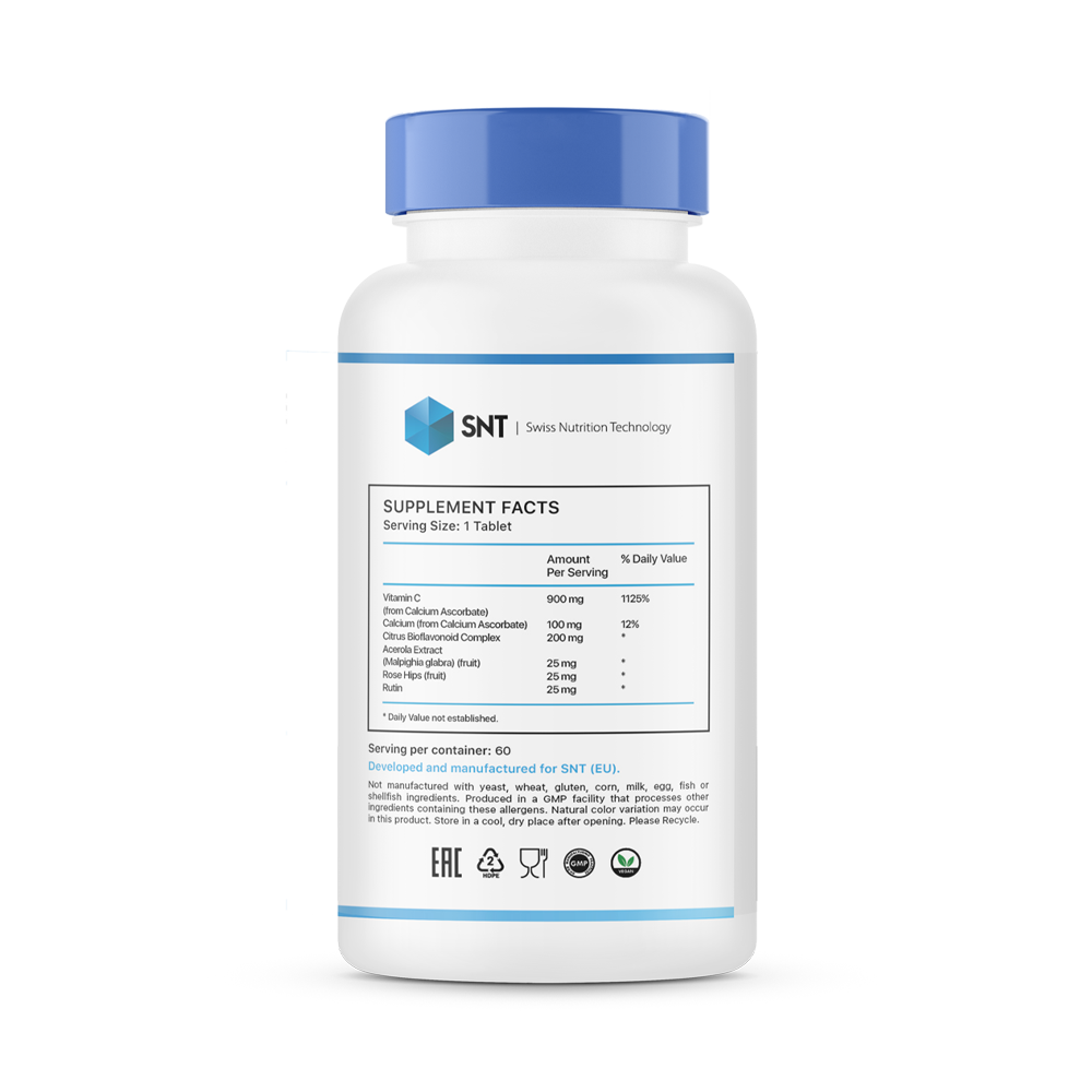 SNT Ester C Plus 900 мг 60 таблеток — это мощный антиоксидантный комплекс, разработанный для поддержания иммунитета, укрепления сосудов и повышения устойчивости организма к внешним стрессам. Основой формулы выступает