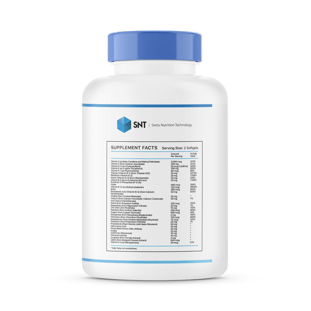 SNT Gent’s Multi — это мощный мультивитаминный комплекс в удобных мягких капсулах, созданный с учетом потребностей активных мужчин. Формула премиум-класса содержит более 20 жизненно важных витаминов, минералов и эксклюзивных фитонутриентов. Комплекс отличается высокой биодоступностью, используя лучшие формы компонентов, такие как хелатные минералы (пиколинат цинка, глицинат меди), метилкобаламин (витамин B12) и активные коферменты (пиридоксаль-5-фосфат). В состав также включены мощные антиоксиданты — альфа-липоевая кислота, экстракт виноградных косточек и CoQ10, которые способствуют защите клеток от окислительного стресса. Добавка поддерживает здоровый уровень энергии, работу иммунной и сердечно-сосудистой систем, а также общее состояние здоровья.