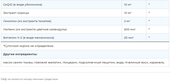 · Мощная антиоксидантная защита: Уникальная смесь, включающая альфа-липоевую кислоту, экстракт виноградных косточек, ликопин и лютеин, помогает бороться со свободными радикалами.