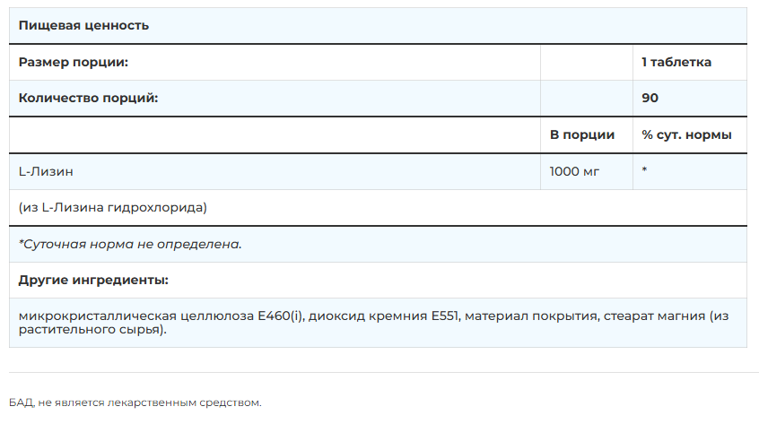 - Легко усваиваемая форма — L-лизин гидрохлорид