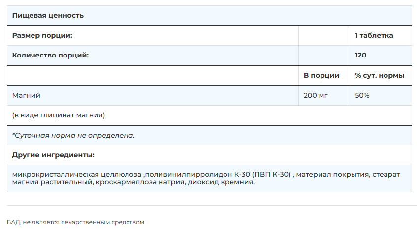 · Высокая биодоступность: Магний в форме глицината эффективно усваивается организмом.