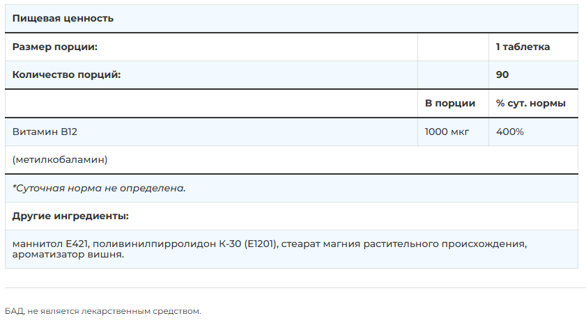 · Высокая дозировка 1000 мкг: Обеспечивает мощную поддержку организма даже при повышенной потребности в витамине B12.