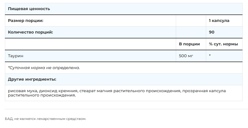 - 500 мг чистого таурина в одной капсуле