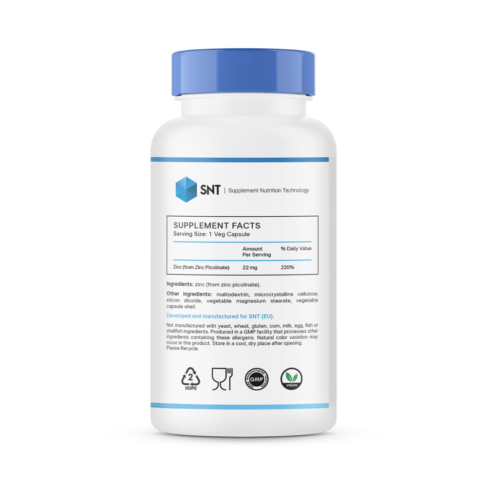 SNT Zinc Picolinate 22 мг — это высокоэффективная биологически активная добавка, разработанная для поддержания оптимального уровня цинка в организме. Каждая капсула содержит 22 мг цинка в форме пиколината — одной из самых усвояемых и биодоступных форм этого жизненно важного микроэлемента. Цинк играет ключевую роль в работе иммунной системы, способствуя быстрому восстановлению после болезней и защищая организм от внешних угроз. Он также является незаменимым компонентом для поддержания здоровой кожи, волос и ногтей, помогая бороться с акне, сухостью и ломкостью.