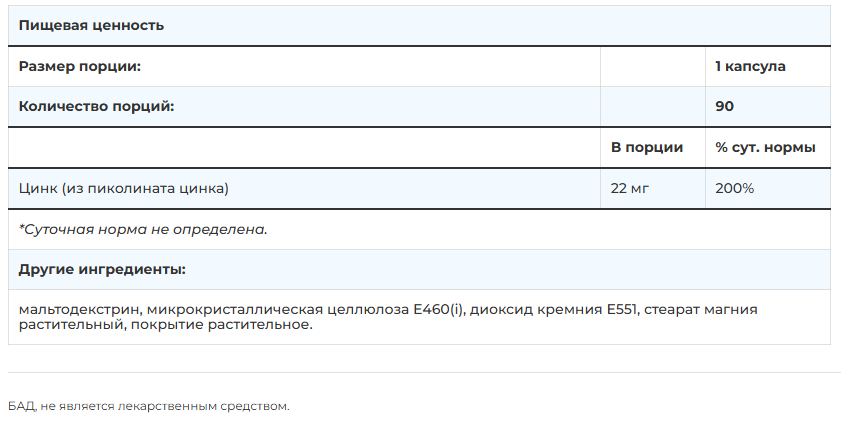 | Элемент каталога | SNT Zinc Picolinate 22 мг 90 капсул [456953] | |