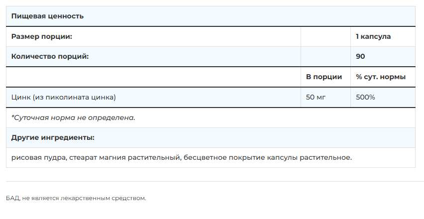 · Высокая биодоступность. Цинк в форме пиколината обладает превосходной усвояемостью по сравнению с другими формами.