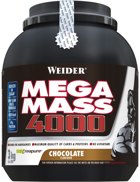 Высокоуглеводный гейнер Mega Mass 4000 Weider, 3000 гMEGA MASS® 4000 разработан для «жестких» тренировок. Гейнер от Weider – это смесь с повышенным содержанием углеводов и высоким содержанием белков, восполняющая любые потребности спортсменов. Также в состав включен моногидрат креатина, витамины и минералы.