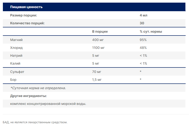 Trace Ionic Magnesium 400 мг — это высокоэффективная биологически активная добавка в жидкой ионной форме, разработанная для максимального усвоения организмом. Каждая порция (4 мл) содержит 400 мг чистого магния, что составляет почти всю суточную потребность взрослого человека. Благодаря уникальному составу на основе концентрированного морского комплекса, магний в этой формуле находится в ионизированном состоянии — именно в такой форме он наиболее легко всасывается клетками и быстро начинает работать.