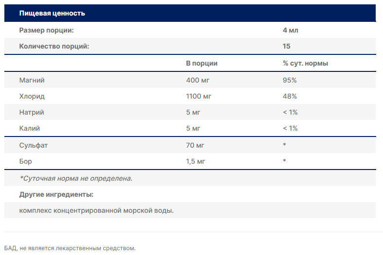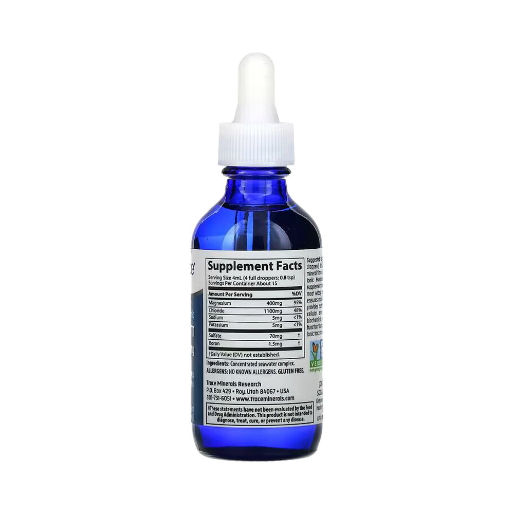 Trace Ionic Magnesium 400 мг — это высокоэффективная биологически активная добавка в жидкой ионной форме, разработанная для максимального усвоения организмом. Каждая порция (4 мл) содержит 400 мг чистого магния, что составляет почти всю суточную потребность взрослого человека. Благодаря уникальному составу на основе концентрированного морского комплекса, магний в этой формуле находится в ионизированном состоянии — именно в такой форме он наиболее легко всасывается клетками и быстро начинает работать.