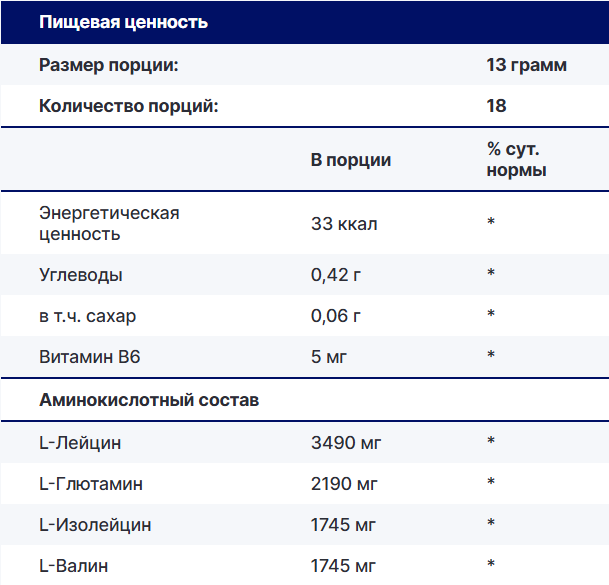 Основной ингредиент | BCAA + вспомогательный комплекс | |