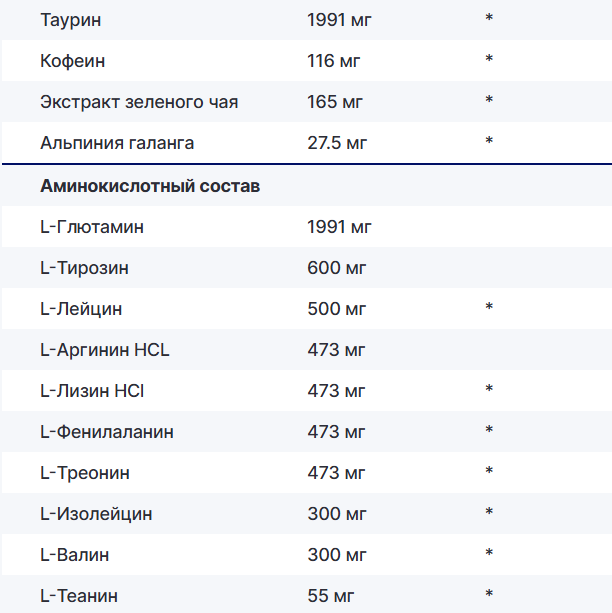 Основной ингредиент | BCAA + вспомогательный комплекс | |