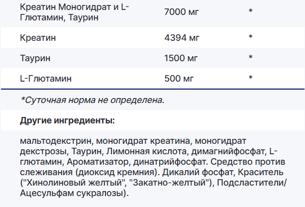 Частота приема: В дни тренировок — 1 порция. В дни отдыха от тренировок для поддержания уровня креатина можно принимать 1 порцию утром или в обеденное время.