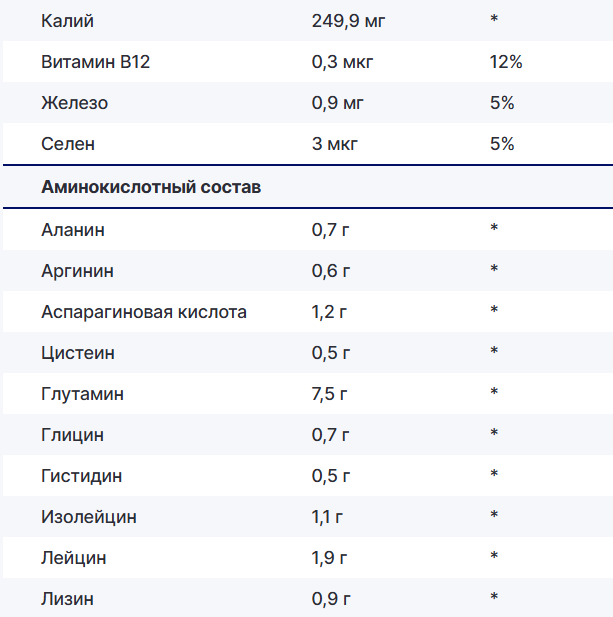 Стандартная порция (20 г белка): Смешайте 1 мерную ложку (30 г) продукта с 200–250 мл холодной воды.